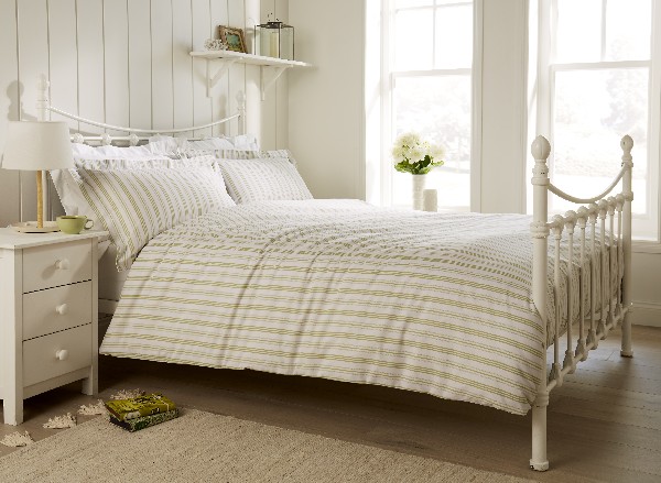 Printed stripes on white background to add contemporary style to your bedroom. Set includes matching pillow cases.